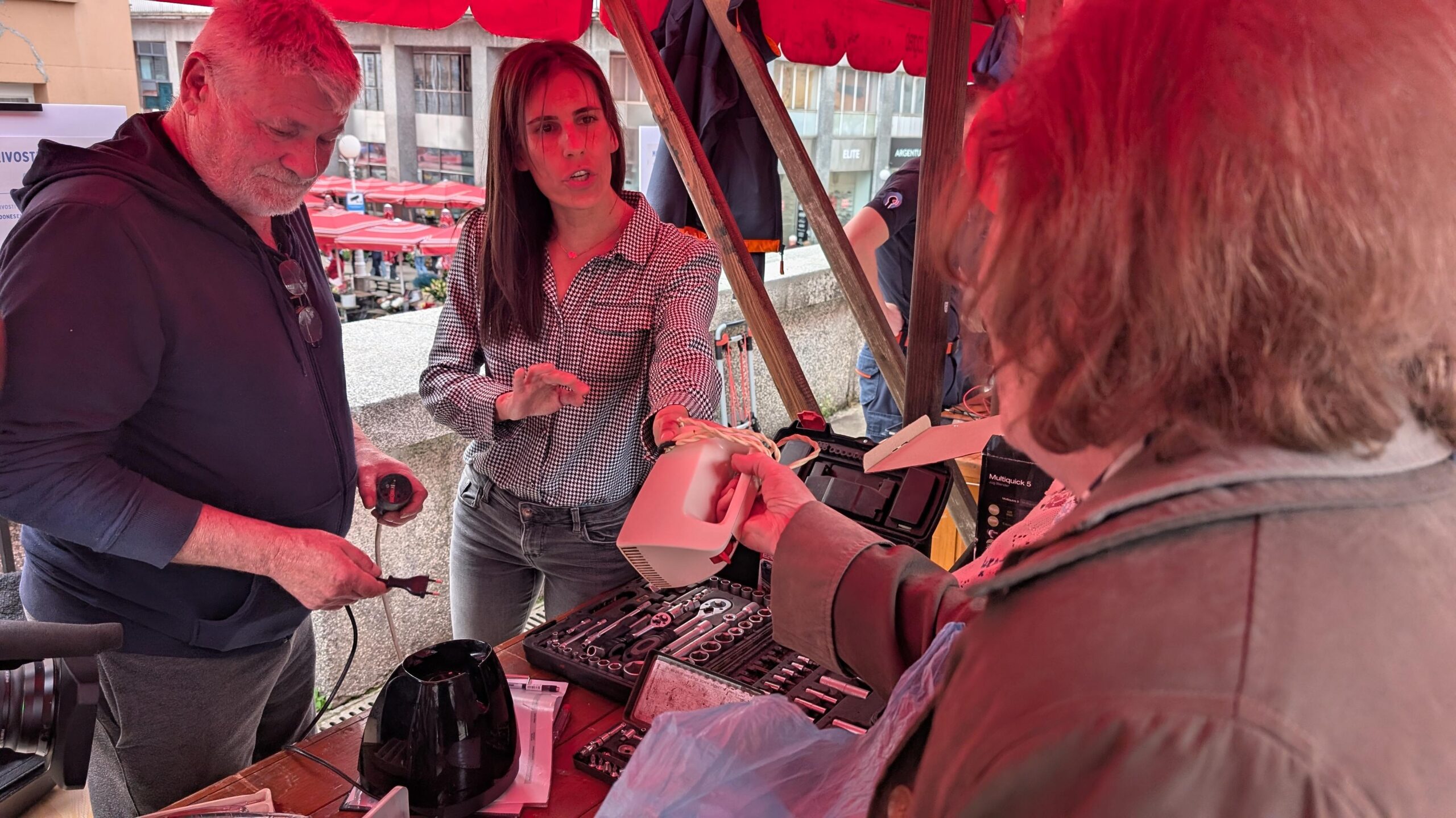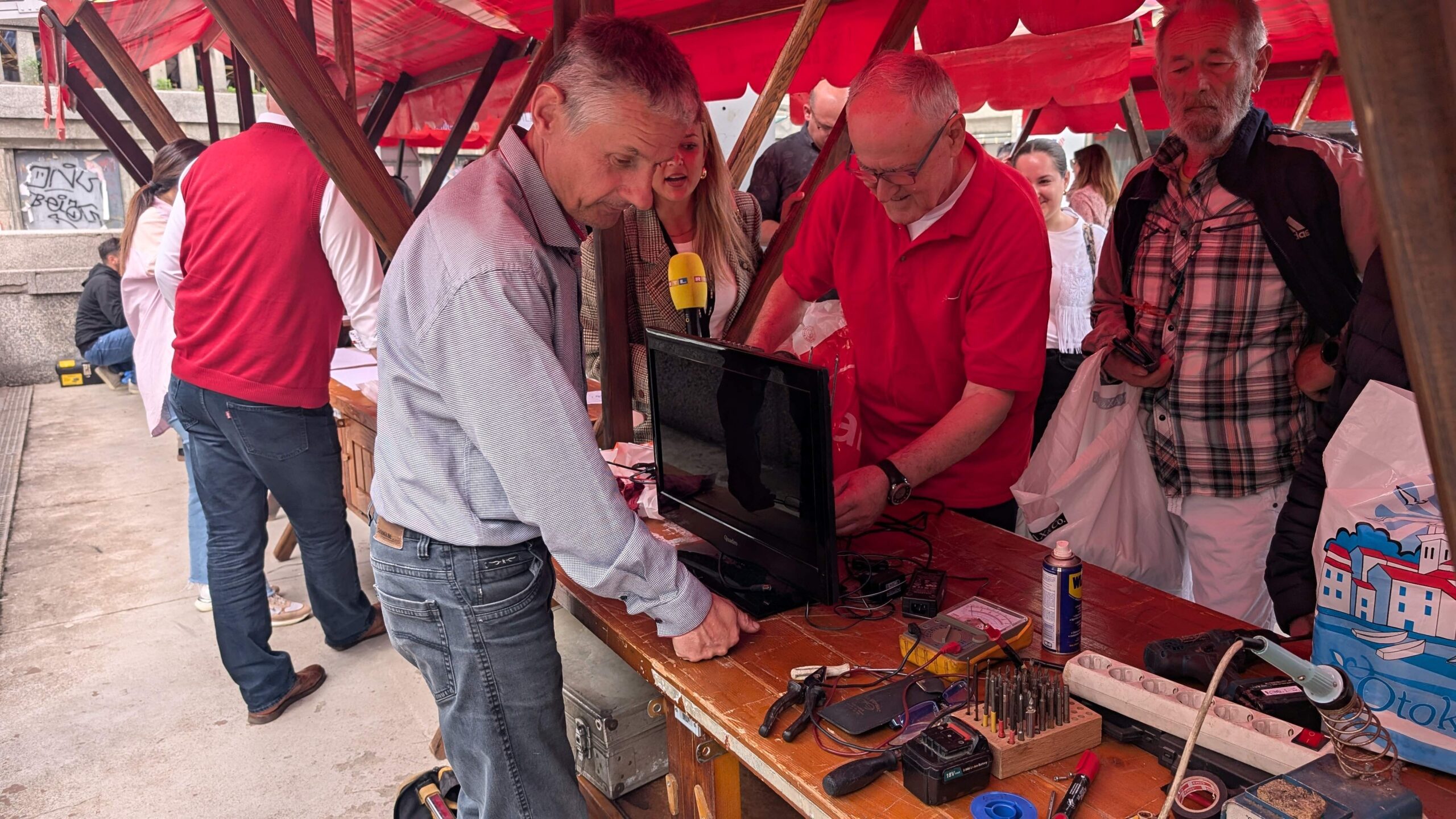 Zagrepčani su jučer dobili priliku besplatno popraviti svoje predmete. Bilo je tu svega od elektroničkih i električnih uređaja, kožnih torbica do nakita. Domaći obrtnici odlučili su počastiti sugrađane svojim stručnim uslugama i savjetima, ali i ukazati na mogućnost popravka stvari. Priliku da popravi svoj uređaj iskoristila je i gospođa Anđa, koja je na televiziji čula najavu za ovo događanje i došla da vidi može li se popraviti.