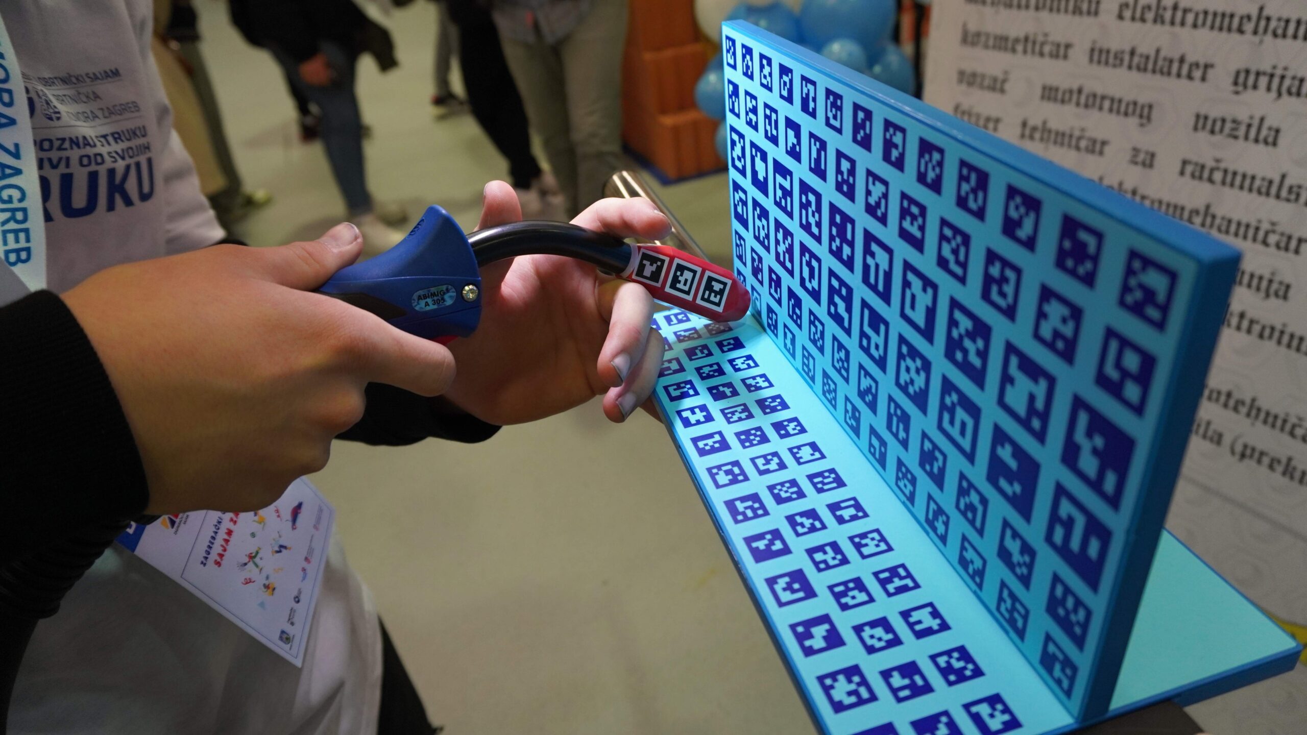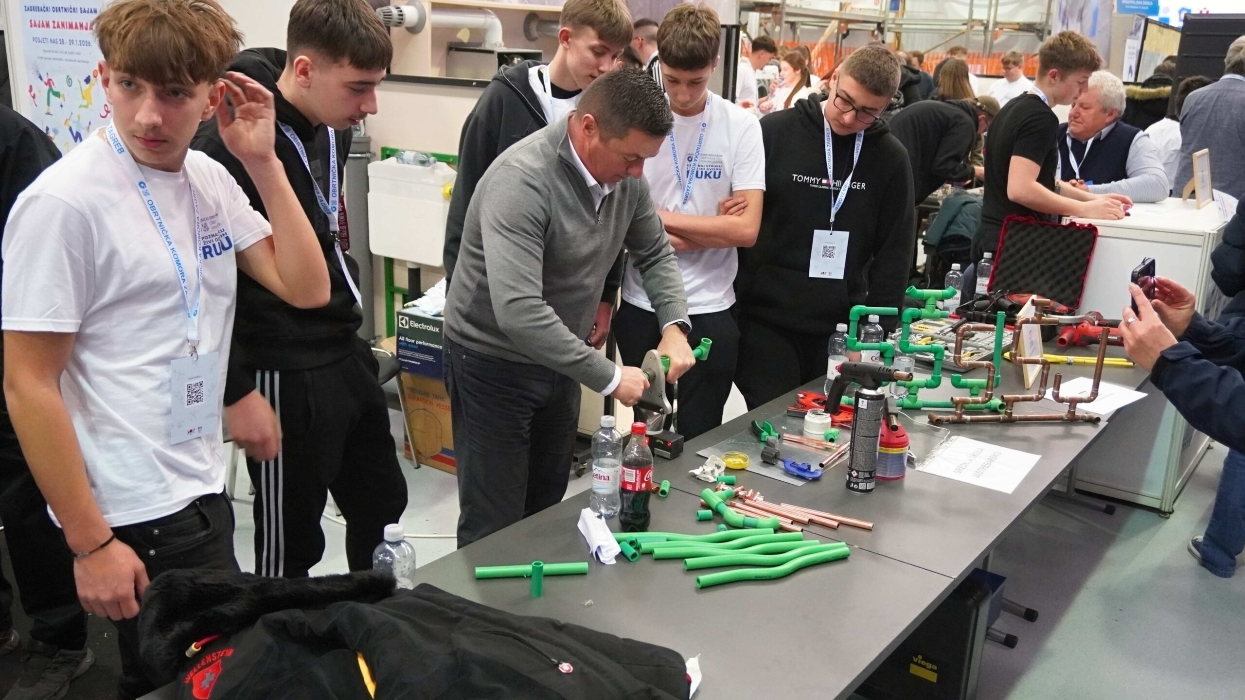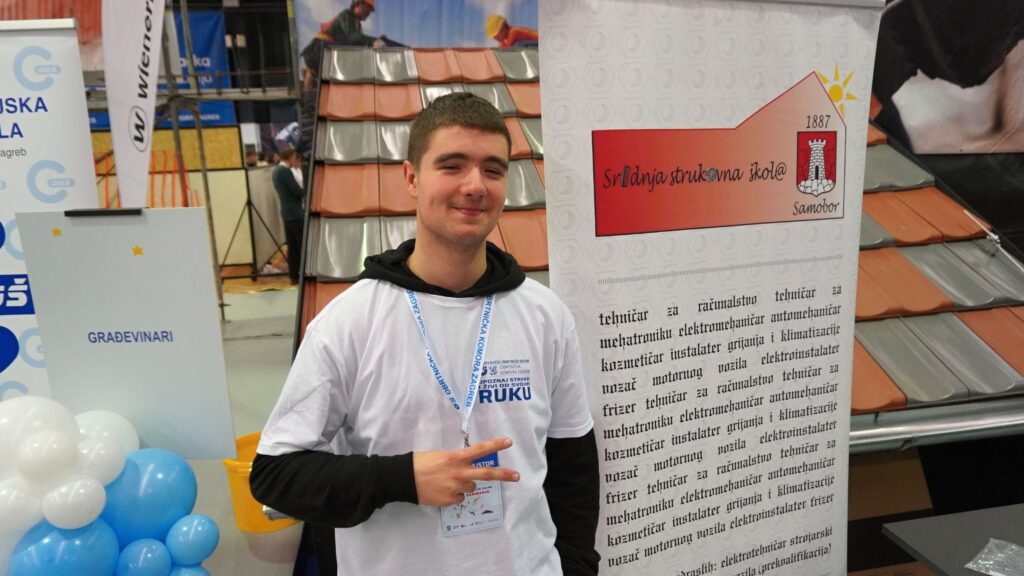 Marko je drugi razred Srednje strukovne škole Samobor. Kako kaže, oduvijek ga je zanimalo kako se postavlja klima, a čuo je i kako su majstori ove struke dobro plaćeni. Zatekli smo ga kako posjetiteljima pokazuje simulator za varenje.